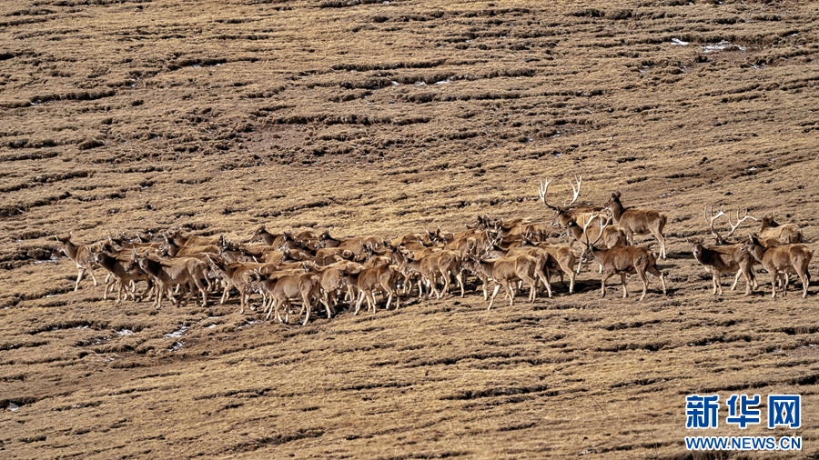 治愈系!百余只白唇鹿在黄河源头集体“踏春”