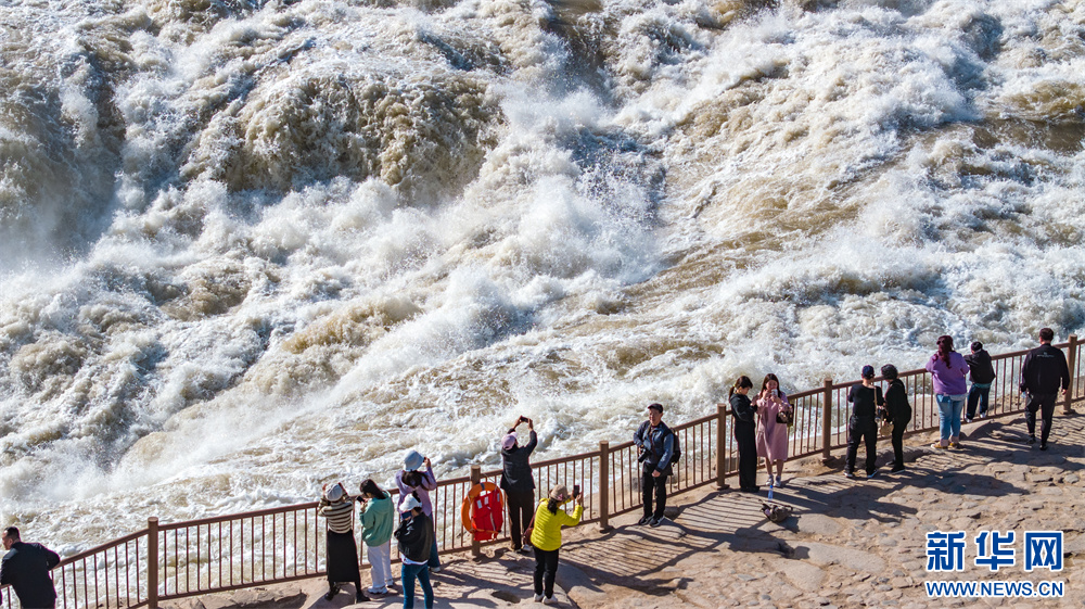 黄河壶口瀑布汹涌澎湃,吸引众多游客前来游玩观赏。 近日,黄河壶口瀑布汹涌澎湃,黄河两岸山桃花漫山遍野,满枝争春。壶口瀑布正式进入一年里的第一个最佳观赏期的到来。 伴随着黄河上游开河,位于陕西宜川段的壶口瀑布水量大增,形成了气势磅礴的瀑布群。湍急的黄河水奔腾咆哮,水雾腾空而起,形成了独特的壶底生烟、晴空洒雨、彩虹通天的神奇景观。 据了