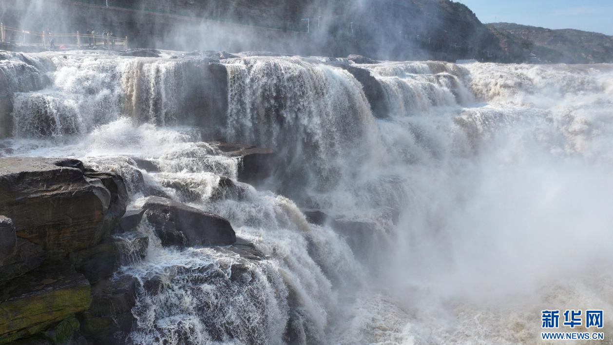 3月26日,受上游融冰开河影响,陕西省延安市宜川县黄河壶口瀑布迎来一年一度的“桃花汛”。在此期间,黄河壶口水气为虹,横浮水上,景象甚为壮观。