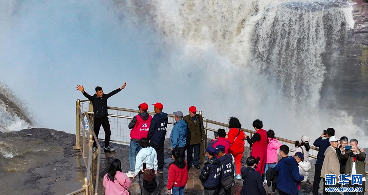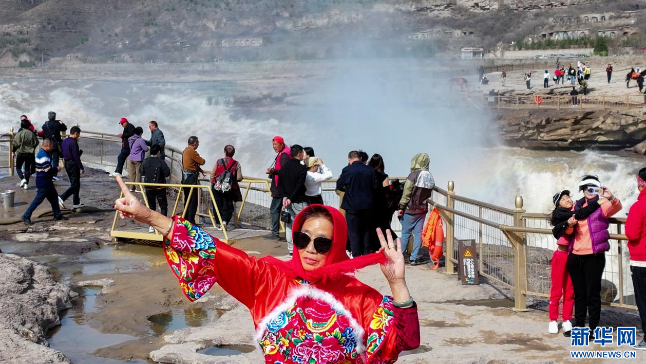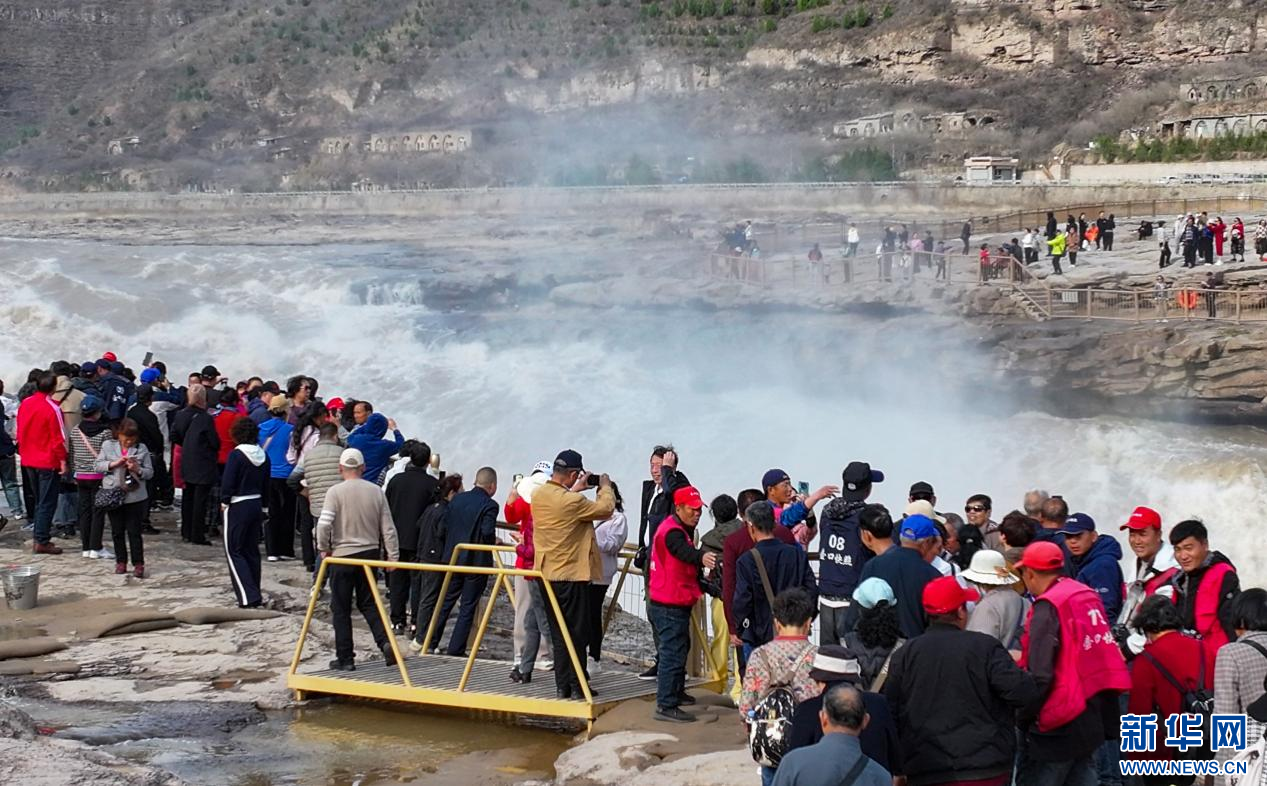 3月26日,宜川县黄河壶口瀑布迎来一年一度的“桃花汛”,游人如织,纷纷前来观赏这一独特景观。