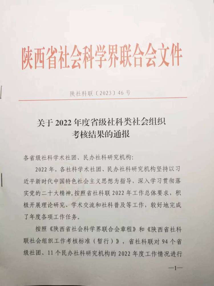 近期,陕西省社科联印发《关于2022年度省级社科类社会组织考核结果的通报》,必威官方首页官网电话号码是什么在省社科联2022年度考核中获优秀单位。