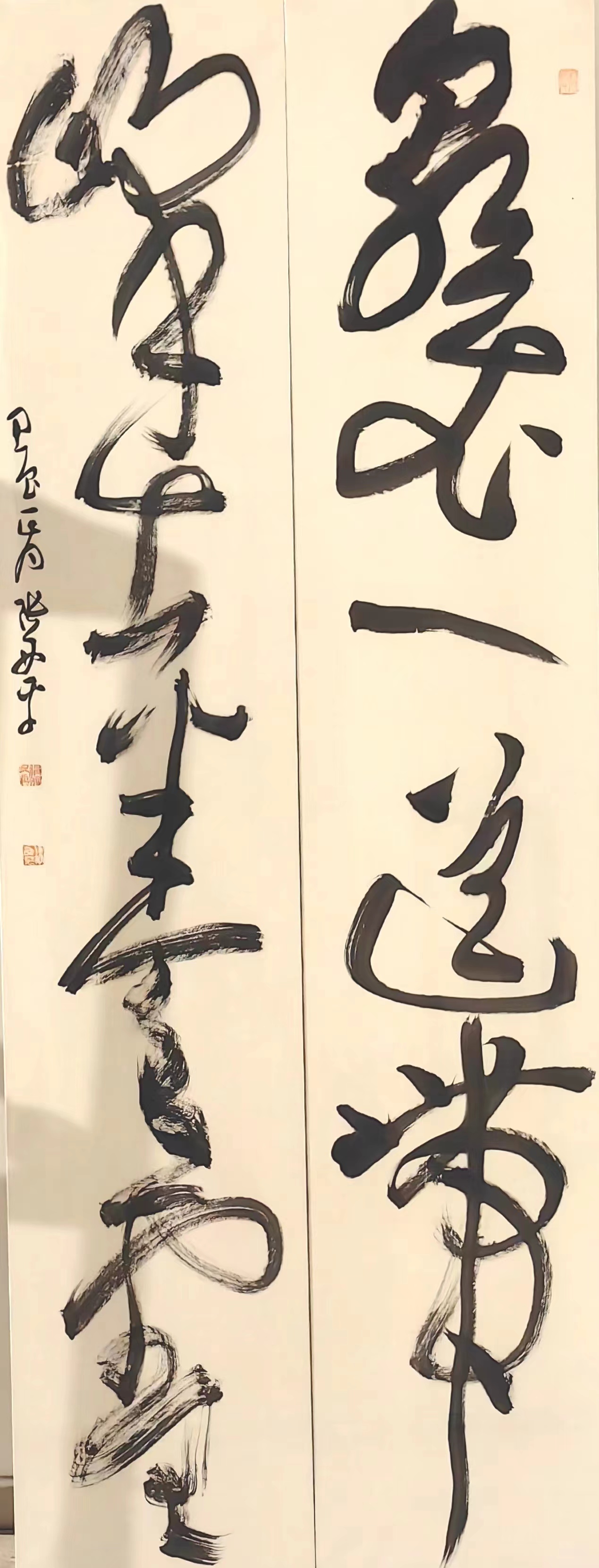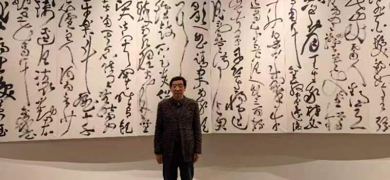 张西平的学书之路先从甲骨文、金文一路开始,在临写《散氏盘》方面,颇能下功夫。碑学上,注重魏碑经典的厚重充盈,灵敏机变,以刀法写意入手,揣摩古人丹书到石刻文字的多维度形象的转换能力,强化汉字造型能力的再书写的观念和意识。张西平自然豪气万丈,草书几乎成了西平挥洒情感,深挖灵魂的书体。这一点,似乎是最能表现自己摆脱束缚的地方。由于前期治学的严谨性决定了西平的草书在放荡不羁的基础上,能抒发自己的情感,成为他引以为傲的学书心得。