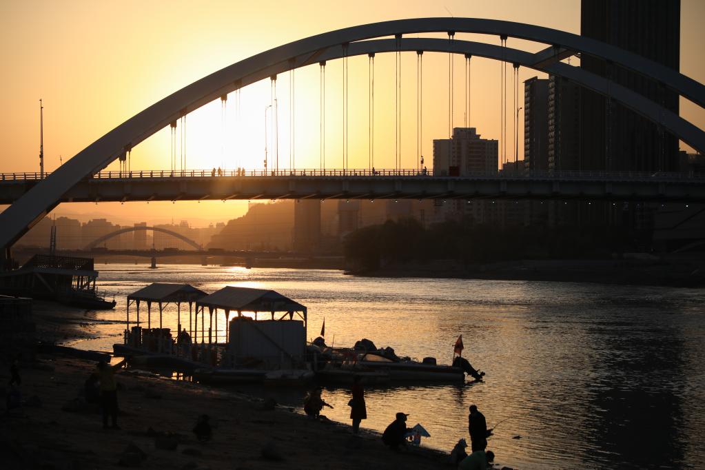 这是3月31日在甘肃省兰州市拍摄的黄河兰州段夕阳景色。近年来,兰州市着力提升黄河兰州段的景观品质,不断完善便民服务设施。新华社记者 马希平 摄