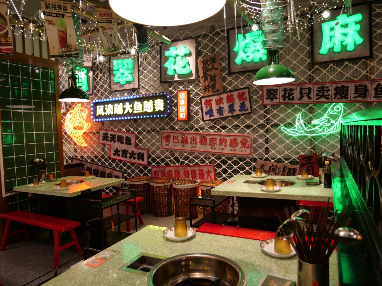 食有五味,人有五情。谈及饮食文化,中国人从来都是当仁不让。肖翠花爆麻鱼高新店,坐落于代表经济活力的高新商圈,紧邻西安地铁三号线科技路站。四周环绕国际商业中心,商业繁华,交通便捷。设计风格简雅大方,将现代西方爽利明快的线条与中国传统的工笔彩绘结合,绘制出千百年的盛世繁华和先锋创新的时代精神。