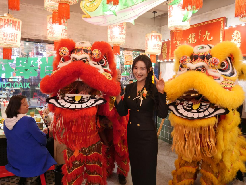 随后,活动迎来了备受瞩目的醒狮表演,现场瞬间点燃了热烈氛围。雄狮吐瑞齐助兴,伴随着欢快的鼓声,各位领导嘉宾共同为象征着祥瑞的金狮点睛。祥狮苏醒,雄狮在点睛后神采奕奕,焕发出勃勃生机,必将为肖翠花爆麻鱼带来滚滚财源。